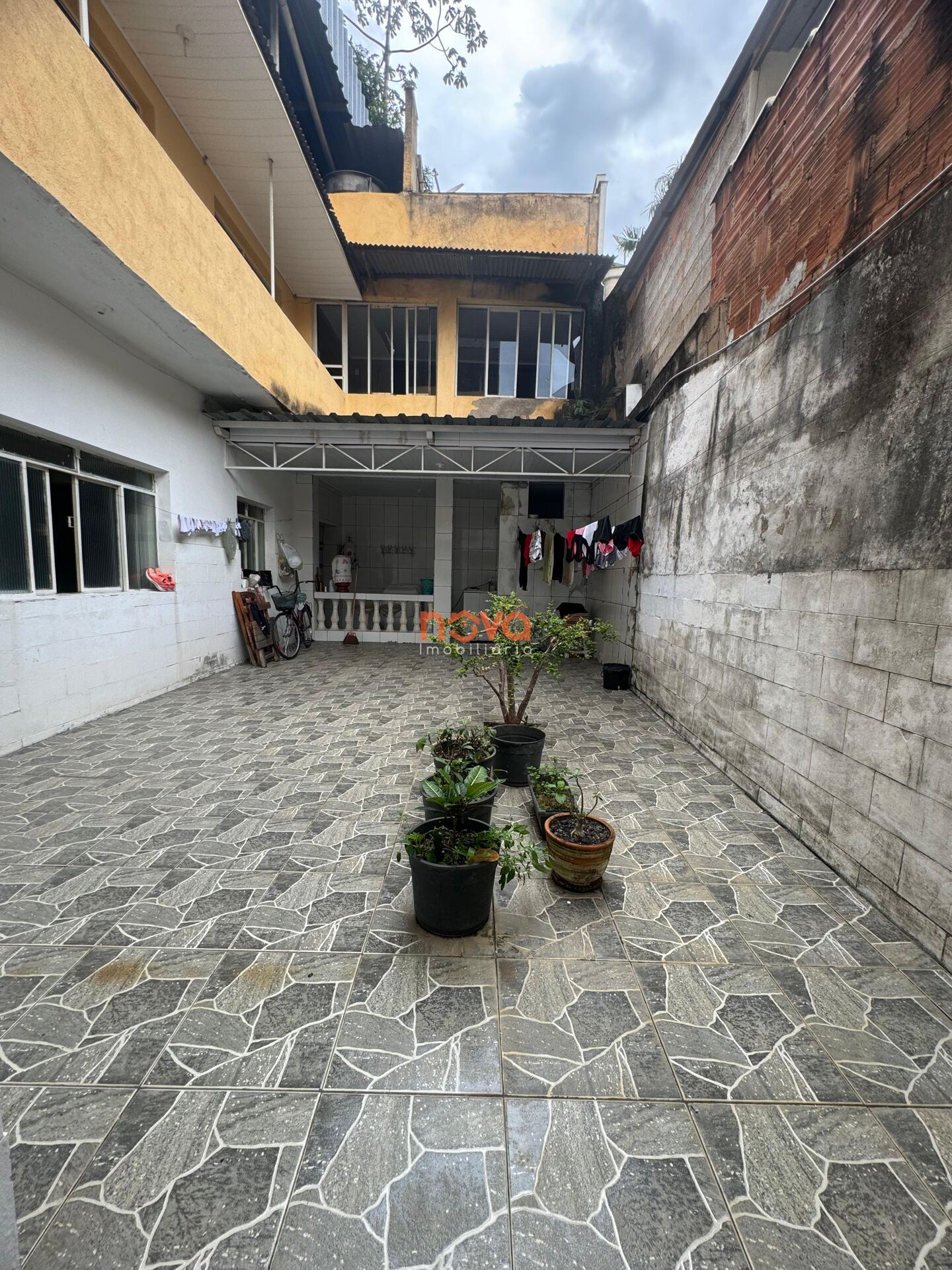 A casa possui: 3 quartos, salas, cozinha, copa, área de serviço, vaga de garagem para 1 carro e 1 moto.